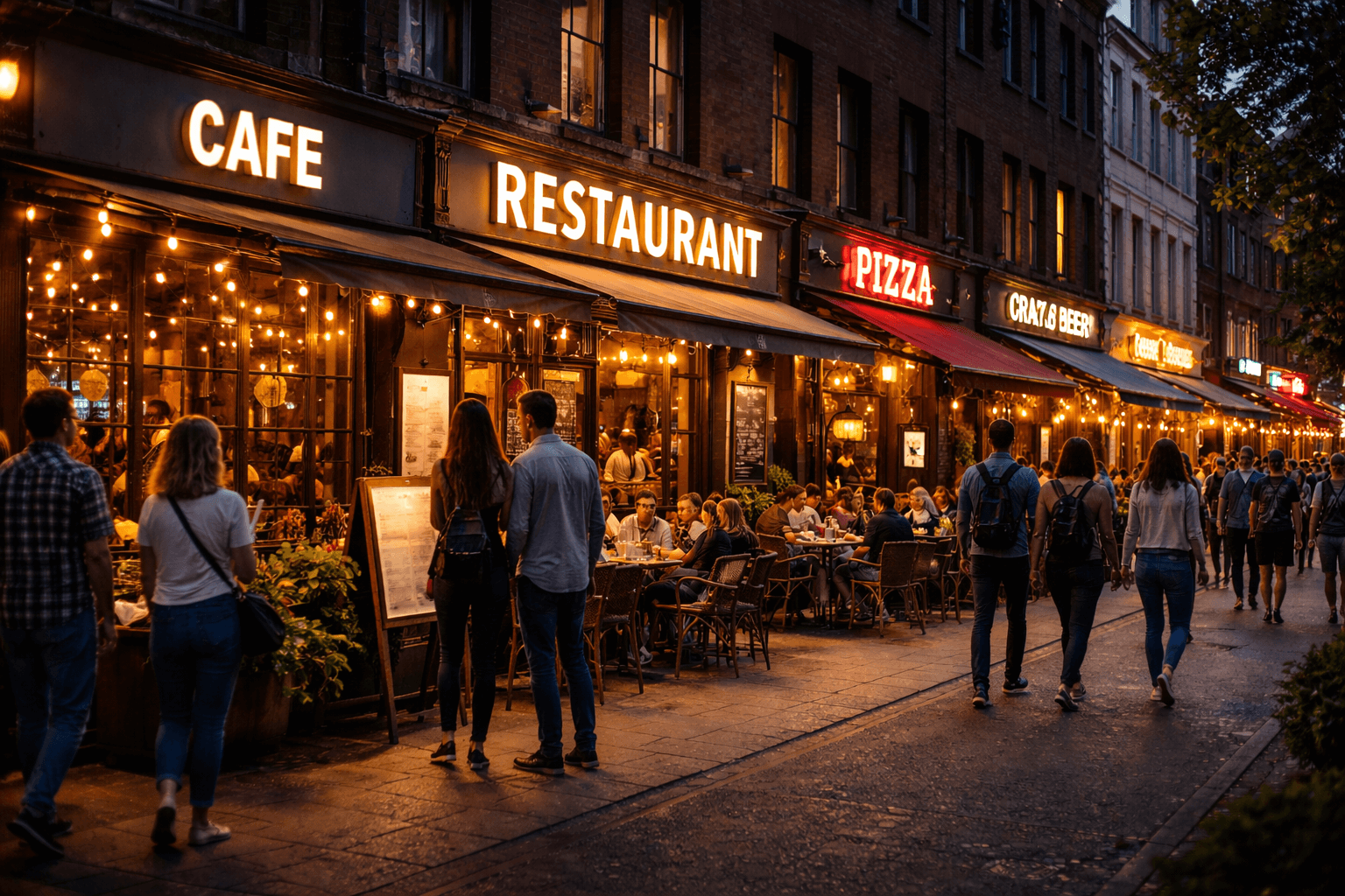 Физический облик заведения работает как круглосуточная реклама. Яркая вывеска с подсветкой, чистые витрины, меню на уличном стенде, цветы в кадках, грифельная доска с акцией дня, удобный вход без ступенек — все это цепляет взгляд прохожих и превращает их в гостей. В радиусе 500 м раздавайте стильные листовки с QR-кодом на скидку 20% или разместите их в почтовых ящиках ближайших домов и бизнес-центров.